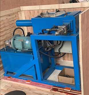Оребренная труба устанавливается и фиксируется в зажимном устройстве станка. После запуска оборудования с помощью ножной педали активируется гидравлическая система.